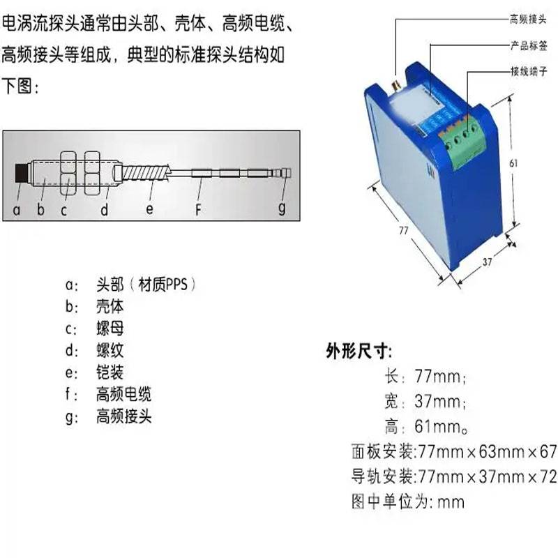 当被测金属与探头之间的距离发生变化时,探头中线圈的Q值也发生变化,Q值的变化引起振荡电压幅度的变化,而这个随距离变化的振荡电压经过检波、滤波、线性补偿、放大归一处理转化成电压(电流)变化,*终完成机械位移(间隙)转换成电压(电流)。由上所述,电涡流传感器工作系统中被测体可看作传感器系统的一半,即一个电涡流位移传感器的性能与被测体有关。
